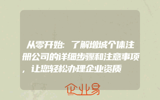 - 从零开始:了解增城个体注册公司的详细步骤和注意事项,让您轻松办理企业资质