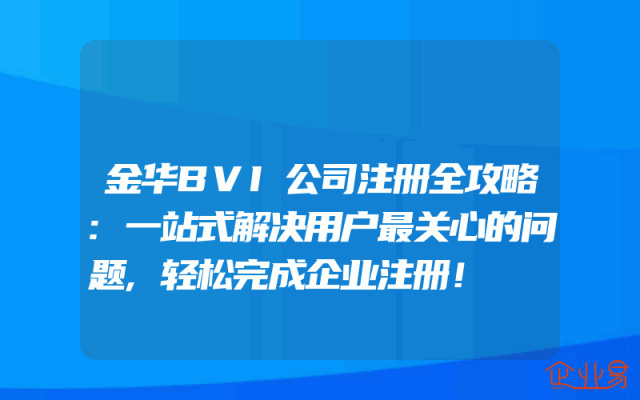 - 金华BVI公司注册全攻略:一站式解决用户最关心的问题,轻松完成企业注册!