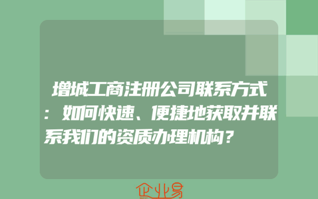 - 增城工商注册公司联系方式:如何快速、便捷地获取并联系我们的资质办理机构?