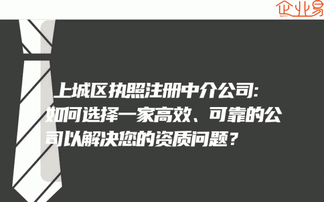 - 上城区执照注册中介公司:如何选择一家高效、可靠的公司以解决您的资质问题?