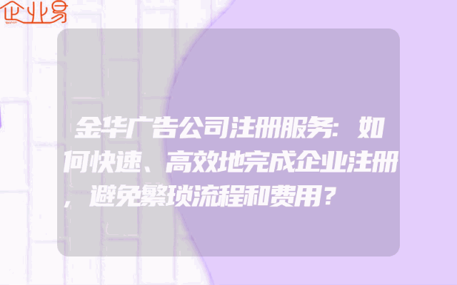 - 金华广告公司注册服务:如何快速、高效地完成企业注册,避免繁琐流程和费用?