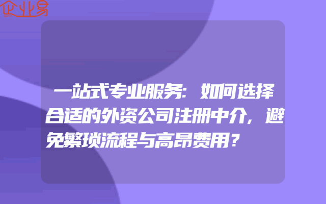 - 一站式专业服务:如何选择合适的外资公司注册中介,避免繁琐流程与高昂费用?在当今全球化的商业环境中,外资公司的注册已经成为许多企业家和投资者的首选。然而,复杂的法规和程序以及高昂的费用常常让人望而却步。因此,选择一个专业的外资公司注册中介机构