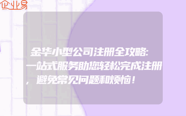 - 金华小型公司注册全攻略:一站式服务助您轻松完成注册,避免常见问题和烦恼!