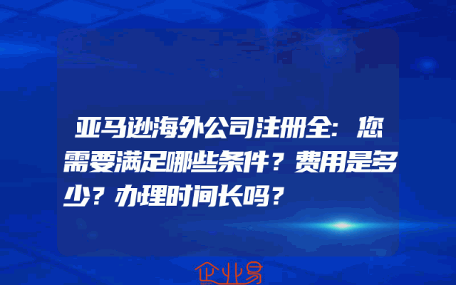 - 亚马逊海外公司注册全:您需要满足哪些条件?费用是多少?办理时间长吗?