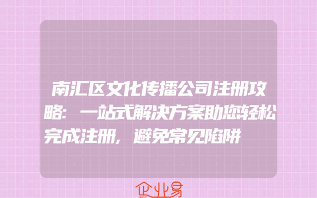 - 南汇区文化传播公司注册攻略:一站式解决方案助您轻松完成注册,避免常见陷阱