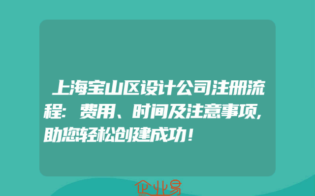 - 上海宝山区设计公司注册流程:费用、时间及注意事项,助您轻松创建成功!
