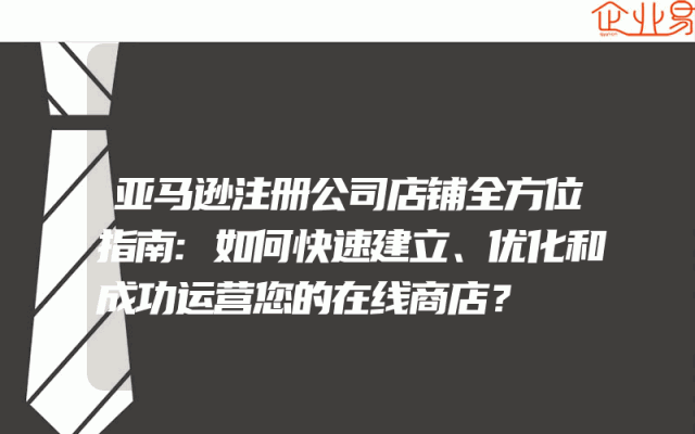 - 亚马逊注册公司店铺全方位指南:如何快速建立、优化和成功运营您的在线商店?在当今的数字时代,电子商务已经成为了企业经营的重要方式之一。亚马逊作为全球最大的电商平台,为中小企业提供了一个广阔的市场空间。本文将为您提供一份全面的亚马逊注册公司店