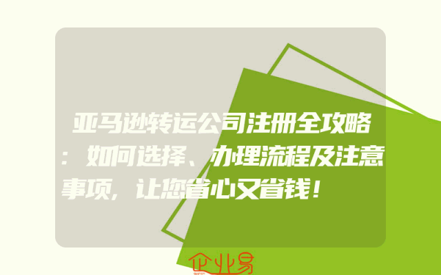 - 亚马逊转运公司注册全攻略:如何选择、办理流程及注意事项,让您省心又省钱!随着跨境电商的兴起,越来越多的人开始关注亚马逊这个全球最大的电商平台。然而,对于许多初次接触亚马逊的人来说,如何选择合适的转运公司并不是一件容易的事情。本文将为您提供一