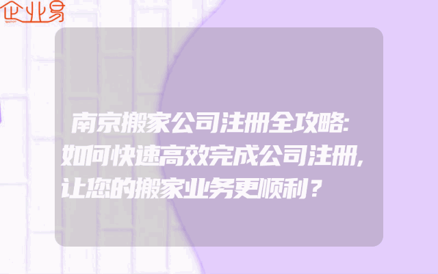 - 南京搬家公司注册全攻略:如何快速高效完成公司注册,让您的搬家业务更顺利?