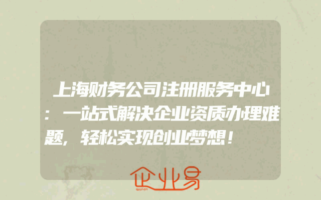 - 上海财务公司注册服务中心:一站式解决企业资质办理难题,轻松实现创业梦想!