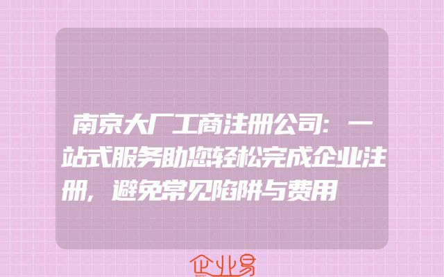 - 南京大厂工商注册公司:一站式服务助您轻松完成企业注册,避免常见陷阱与费用