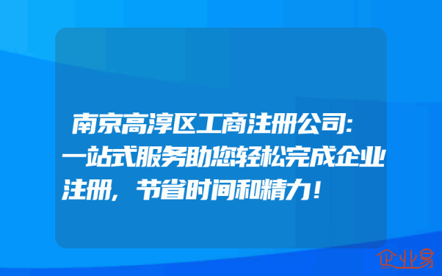 - 南京高淳区工商注册公司:一站式服务助您轻松完成企业注册,节省时间和精力!
