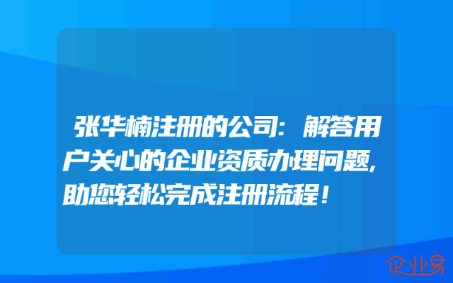 - 张华楠注册的公司:解答用户关心的企业资质办理问题,助您轻松完成注册流程!
