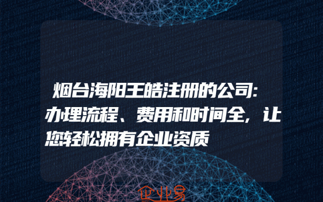- 烟台海阳王皓注册的公司:办理流程、费用和时间全,让您轻松拥有企业资质