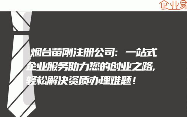 - 烟台苗刚注册公司:一站式企业服务助力您的创业之路,轻松解决资质办理难题!