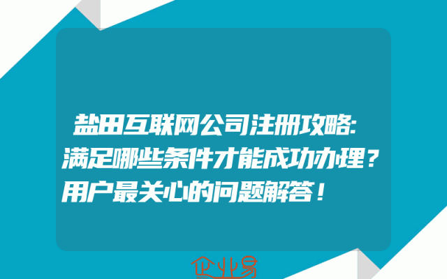 - 盐田互联网公司注册攻略:满足哪些条件才能成功办理?用户最关心的问题解答!