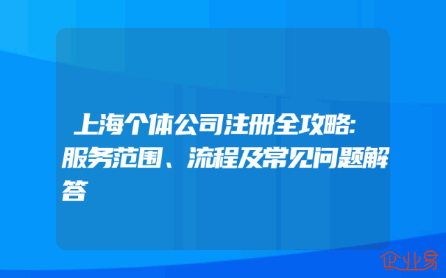 - 上海个体公司注册全攻略:服务范围、流程及常见问题解答