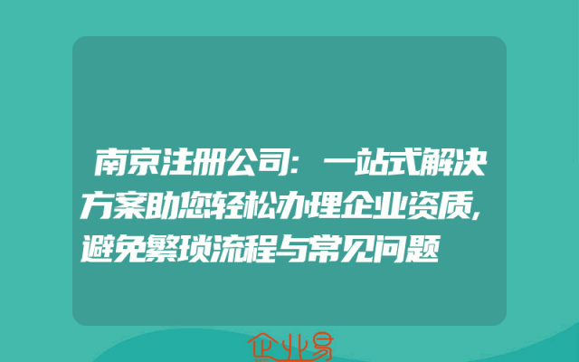 - 南京注册公司:一站式解决方案助您轻松办理企业资质,避免繁琐流程与常见问题