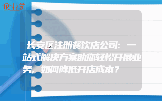 - 长安区注册餐饮店公司:一站式解决方案助您轻松开展业务,如何降低开店成本?
