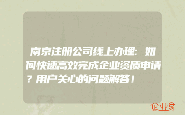 - 南京注册公司线上办理:如何快速高效完成企业资质申请?用户关心的问题解答!