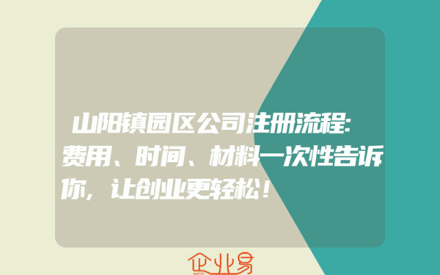 - 山阳镇园区公司注册流程:费用、时间、材料一次性告诉你,让创业更轻松!