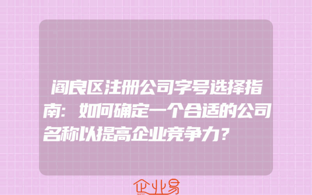 - 阎良区注册公司字号选择指南:如何确定一个合适的公司名称以提高企业竞争力?
