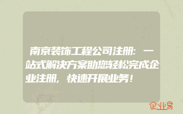 - 南京装饰工程公司注册:一站式解决方案助您轻松完成企业注册,快速开展业务!
