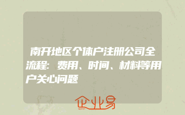 - 南开地区个体户注册公司全流程:费用、时间、材料等用户关心问题