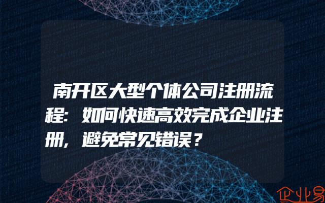 - 南开区大型个体公司注册流程:如何快速高效完成企业注册,避免常见错误?