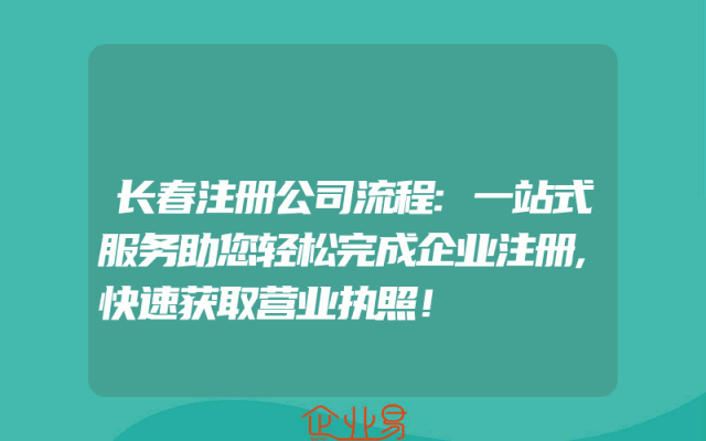 - 长春注册公司流程:一站式服务助您轻松完成企业注册,快速获取营业执照!