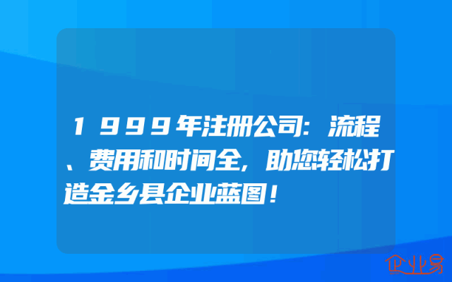 - 1999年注册公司:流程、费用和时间全,助您轻松打造金乡县企业蓝图!