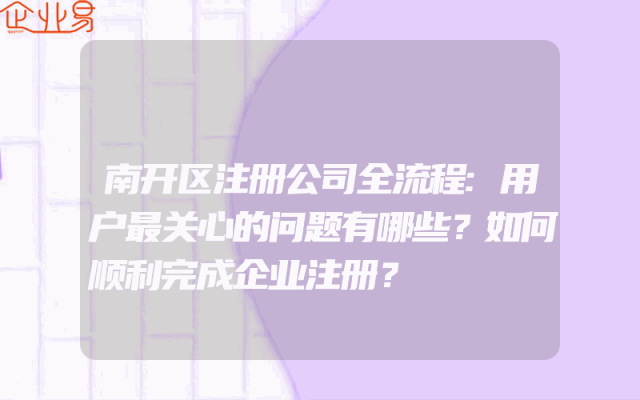 - 南开区注册公司全流程:用户最关心的问题有哪些?如何顺利完成企业注册?
