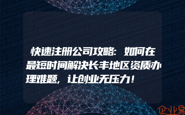 - 快速注册公司攻略:如何在最短时间解决长丰地区资质办理难题,让创业无压力!