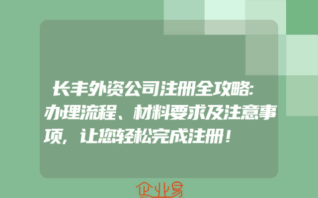 - 长丰外资公司注册全攻略:办理流程、材料要求及注意事项,让您轻松完成注册!