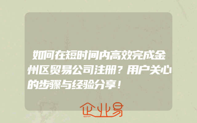 - 如何在短时间内高效完成金州区贸易公司注册?用户关心的步骤与经验分享!