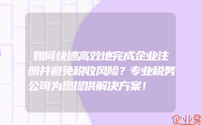 - 如何快速高效地完成企业注册并避免税收风险?专业税务公司为您提供解决方案!