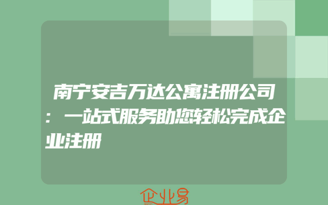 - 南宁安吉万达公寓注册公司:一站式服务助您轻松完成企业注册