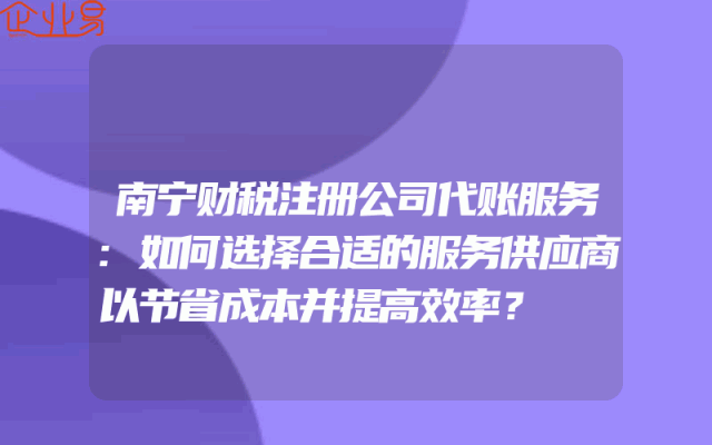 - 南宁财税注册公司代账服务:如何选择合适的服务供应商以节省成本并提高效率?