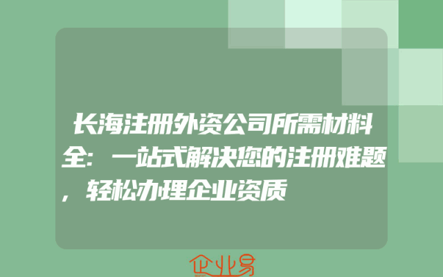 - 长海注册外资公司所需材料全:一站式解决您的注册难题,轻松办理企业资质
