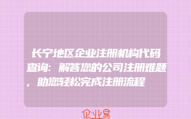 - 长宁地区企业注册机构代码查询:解答您的公司注册难题,助您轻松完成注册流程