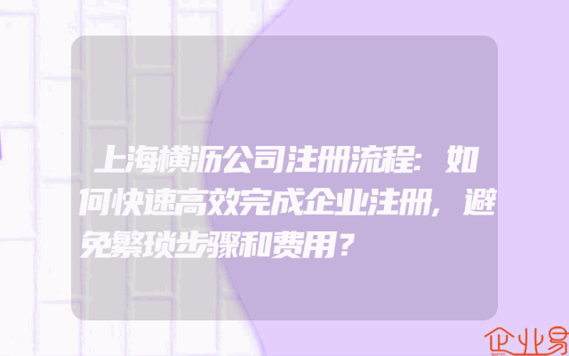 - 上海横沥公司注册流程:如何快速高效完成企业注册,避免繁琐步骤和费用?