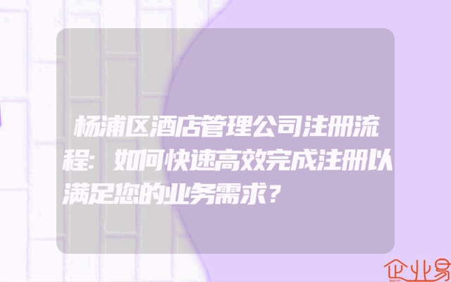 - 杨浦区酒店管理公司注册流程:如何快速高效完成注册以满足您的业务需求?