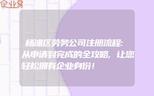 - 杨浦区劳务公司注册流程:从申请到完成的全攻略,让您轻松拥有企业身份!