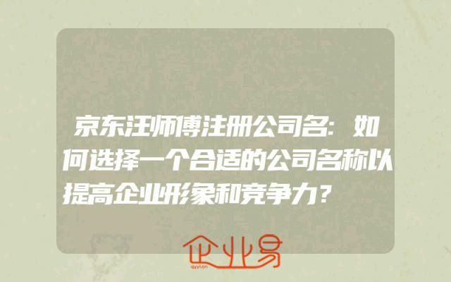 - 京东汪师傅注册公司名:如何选择一个合适的公司名称以提高企业形象和竞争力?