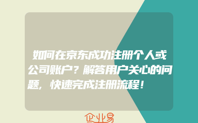 - 如何在京东成功注册个人或公司账户?解答用户关心的问题,快速完成注册流程!