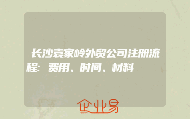 - 长沙袁家岭外贸公司注册流程:费用、时间、材料
