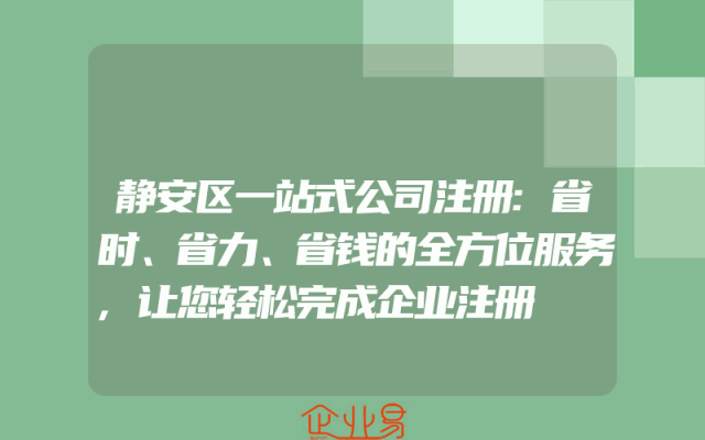 - 静安区一站式公司注册:省时、省力、省钱的全方位服务,让您轻松完成企业注册