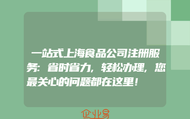 - 一站式上海食品公司注册服务:省时省力,轻松办理,您最关心的问题都在这里!