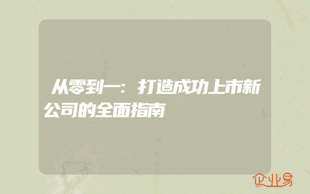 - 打造成功上市新公司的全面指南在当今竞争激烈的商业环境中,打造一家成功的上市公司是一项艰巨的任务。从零开始创建一家公司需要充分的规划、创新思维和坚定的决心。本文将为您提供一份全面的指南,帮助您从零开始打造一家成功的上市公司。一、明确公司愿