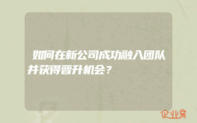 - 如何在新公司成功融入团队并获得晋升机会?
